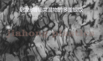 二、多重銀紋機理。尼龍6增韌橡膠共混體系中,橡膠粒子起應力集中的作用,在與應力方向垂直的赤道附近受力較大,引發(fā)銀紋的產(chǎn)生。銀紋的擴展過程中遇到別一個橡膠粒子或銀紋就會終止。大量銀紋的存在并吸收了沖擊能,共混物韌性有了大幅度提高。